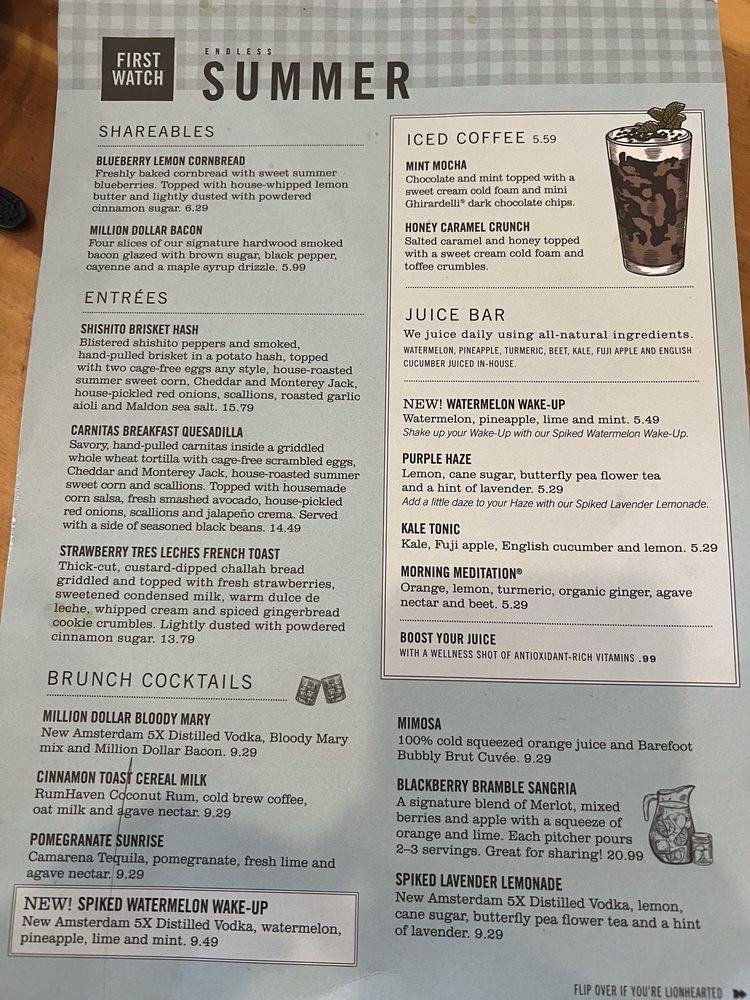 Customer reviews highlight the excellent service and consistent quality of the food, making First Watch a top choice for brunch enthusiasts.