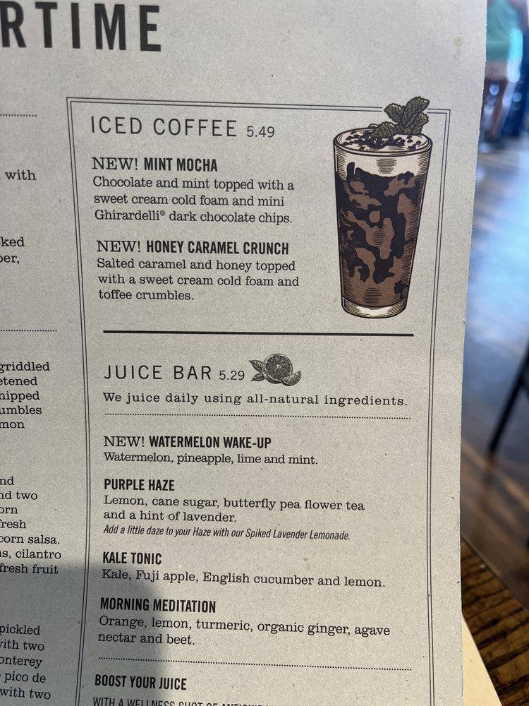 - Pair your breakfast with delightful beverages like the Mint Mocha Iced Coffee.